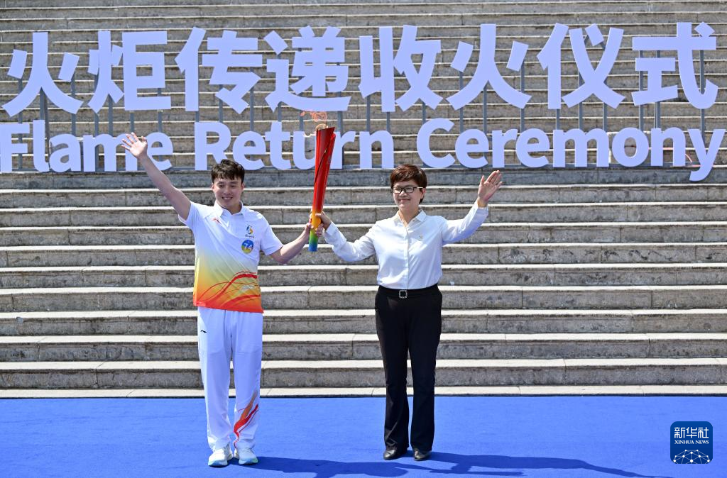 3月30日,最后一棒火炬手齐广璞手持火炬抵达收火仪式现场。新华社记者 郭程 摄